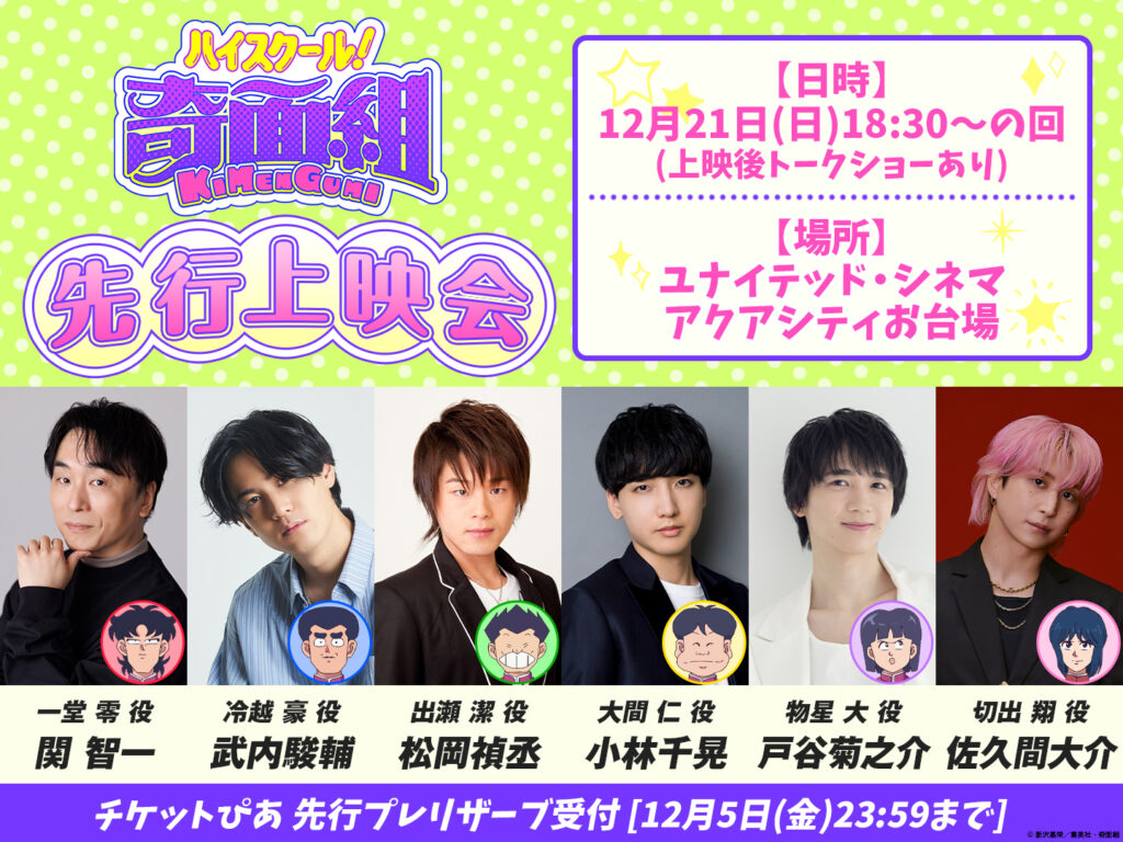 2025年12月21日(日)ユナイテッド・シネマ アクアシティお台場にてTVアニメ『ハイスクール!奇面組』を一足早く楽しめる第1話先行上映会の開催が決定いたしました。